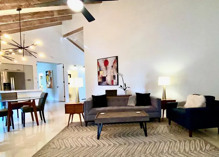 Die Villa in Rancho Mirage befindet sich 1 km von Unterhaltungseinrichtungen wie dem Mission Hills Country Club. Diese Villa ist etwa 10 Autominuten von den Sunnylands entfernt.